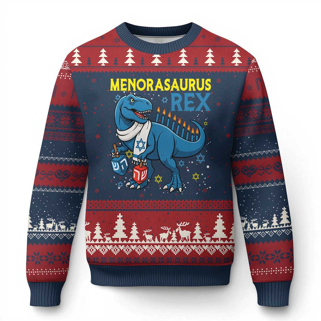Rushgleam Dinosaur Menorasaurus Ugly Christmas Sweater Hanukkah Menorah Gift For People Who Love Dino