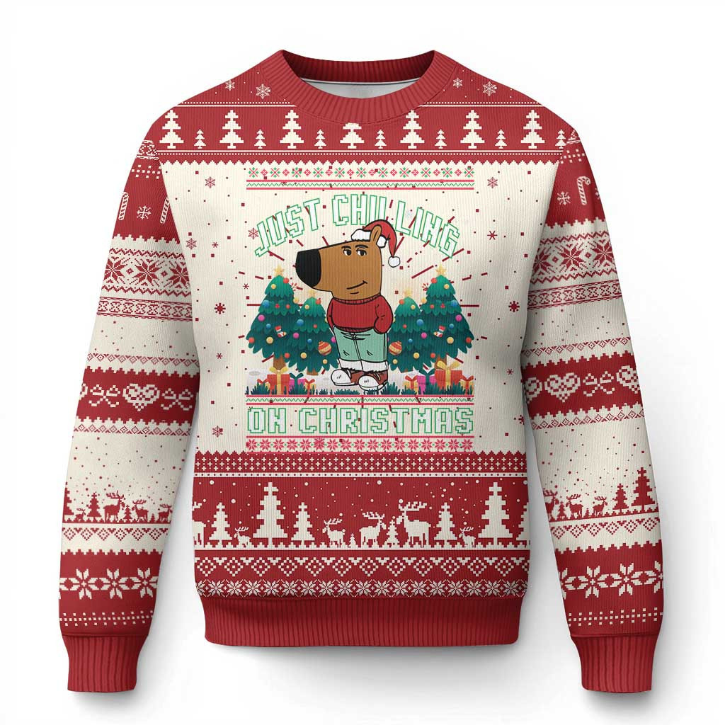 Rushgleam Dog Just Chilling On Christmas Ugly Sweater Chillin Guy Viral Meme Sweater Xmas Dog Gifts