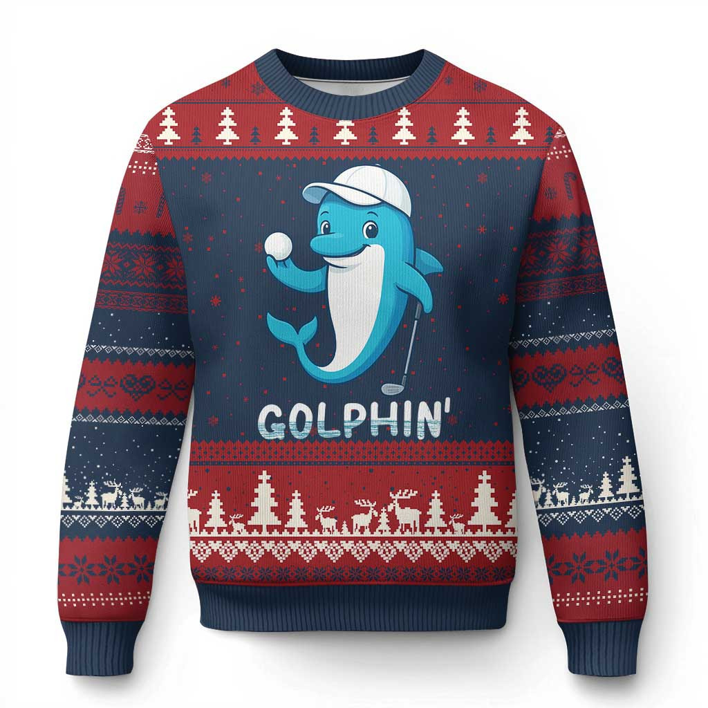 Rushgleam Dolphin Golphin Ugly Christmas Sweater Funny Golf Gift For Dolphin Lovers