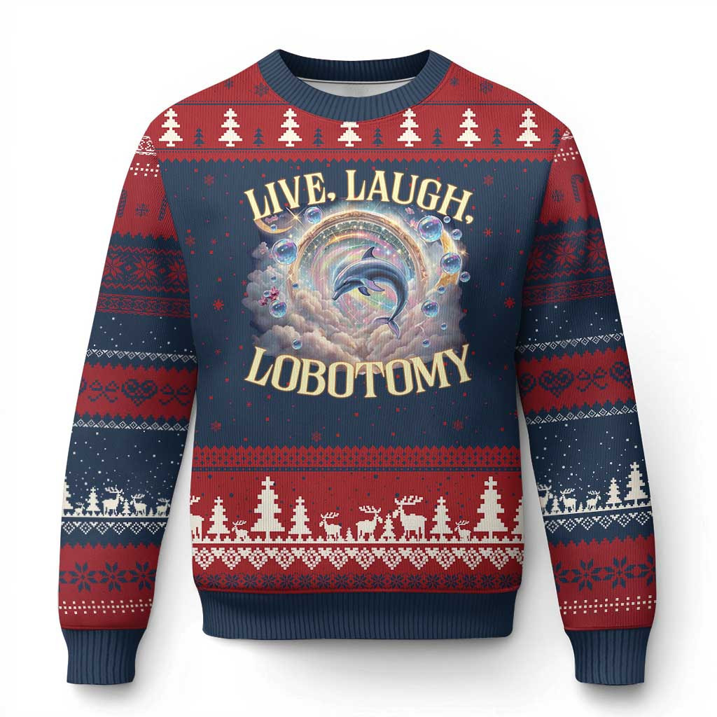 Rushgleam Dolphin Live Laugh Lobotomy Ugly Christmas Sweater Funny Xmas Jumper Silly Joke Gifts