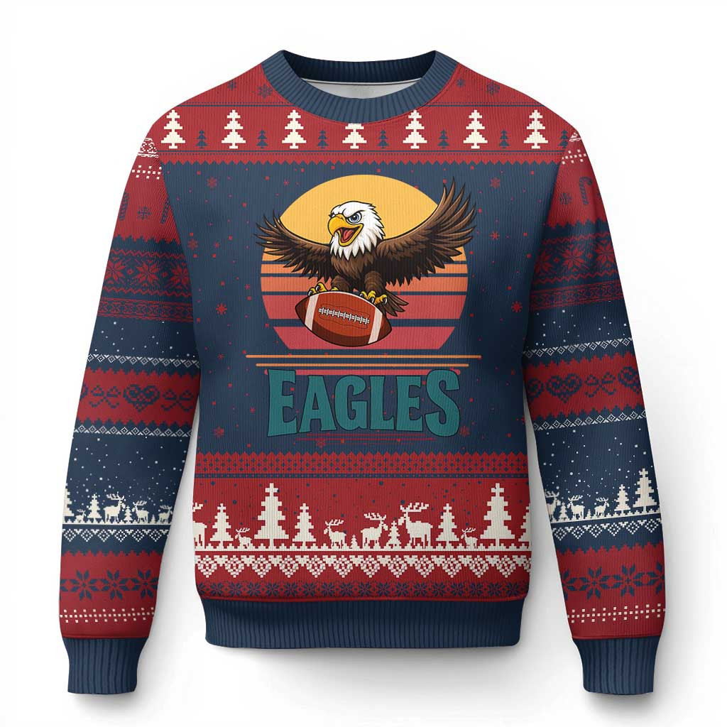 Rushgleam Eagle Football Ugly Christmas Sweater Retro Vintage Style Present For Football Fans