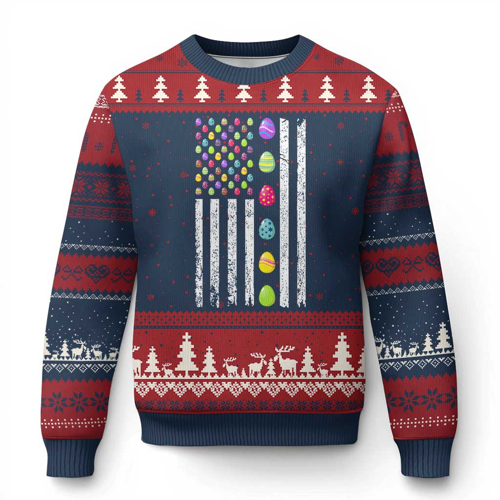 Rushgleam Easter Eggs American Flag Ugly Christmas Sweater Happy Easter Day Jumper Patriotic Gifts