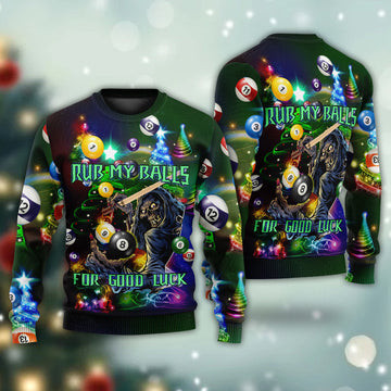 Billiard Rub My Balls For Good Luck Ugly Christmas Sweater Gifts For Billiard Player