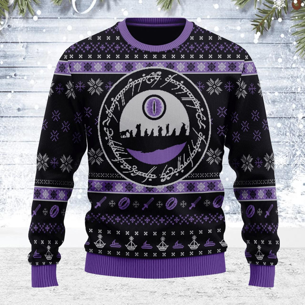 Rushgleam Fantasy Eye Ugly Christmas Sweater Magic Ring Holiday Jumper Gift For Movie Lovers