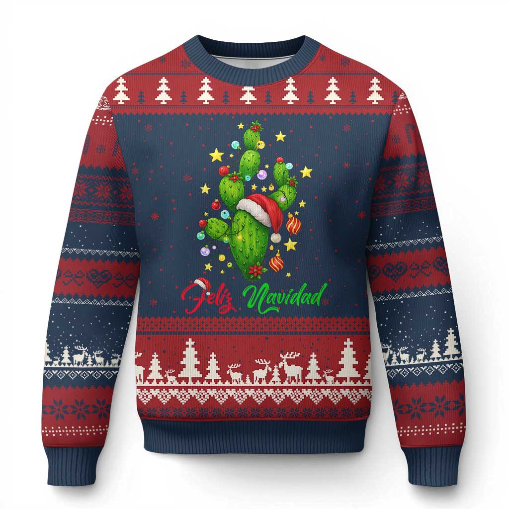 Rushgleam Feliz Navidad Cactus Ugly Christmas Sweater Funny Couples Xmas Sweaters Spanish Gifts