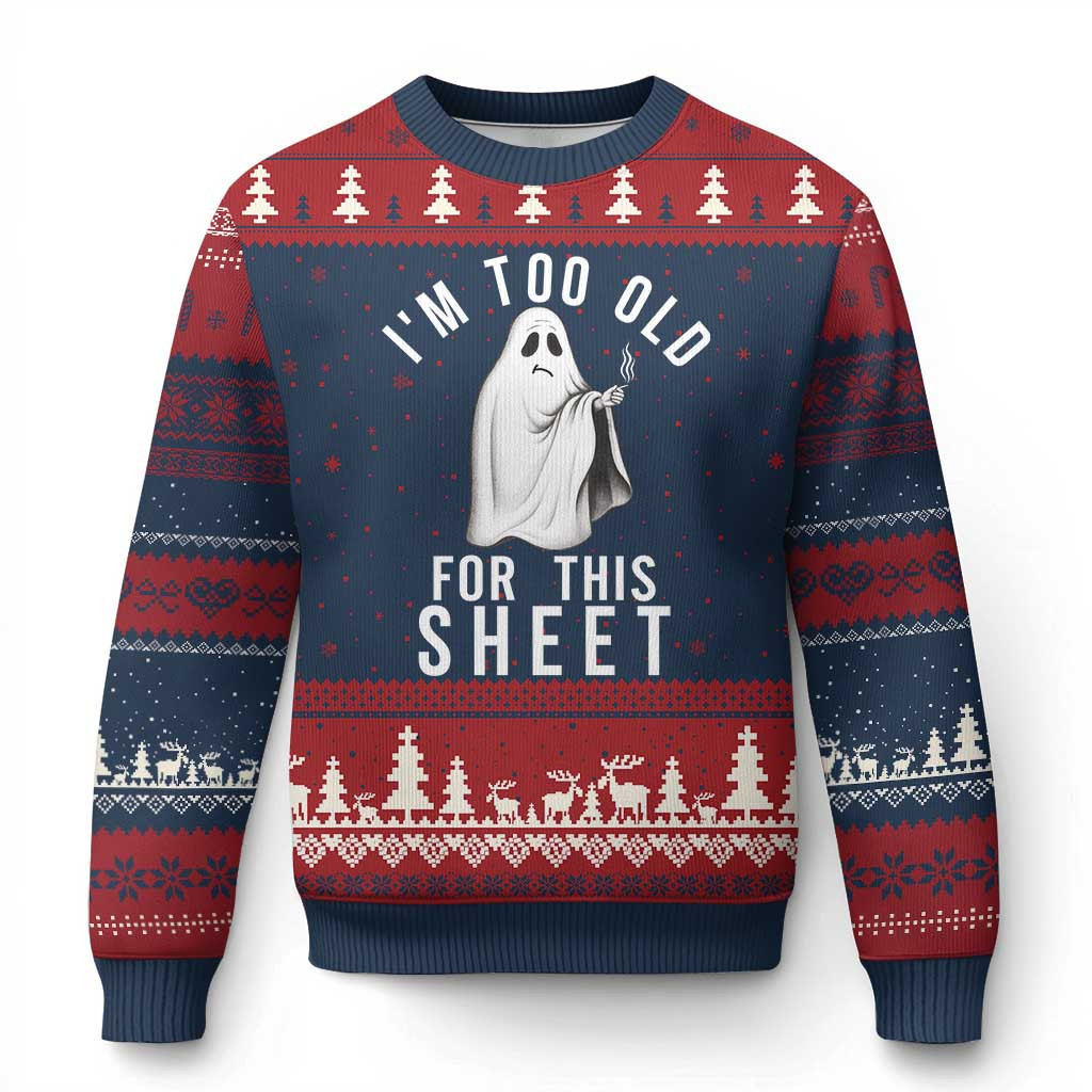 Rushgleam Ghost I Am Too Old For This Sheet Ugly Christmas Sweater Weird Xmas Sweater Gift For Her