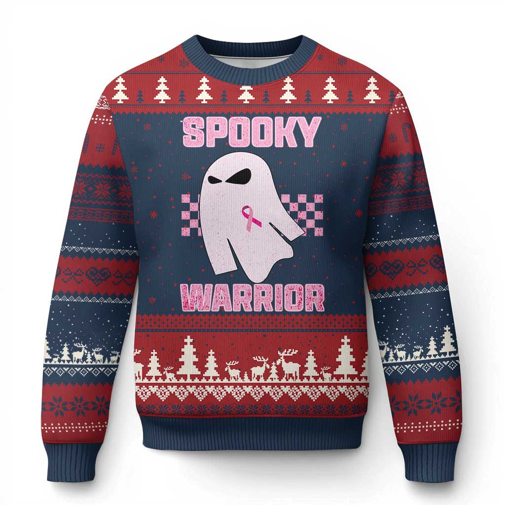 Rushgleam Ghost Wear Pink Ribbon Ugly Christmas Sweater Breast Cancer Awareness Sweater Ghost Gifts