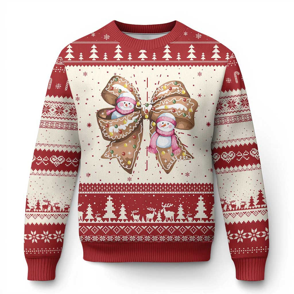 Rushgleam Gingerbread Coquette Bow Ugly Christmas Sweater Cute Snowman Girly Xmas Gifts For Her