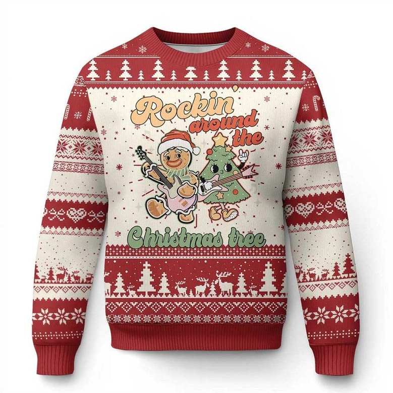 Rushgleam Gingerbread Groovy Ugly Holiday Sweater Rockin Around The Christmas Tree Cute Clothes Gifts