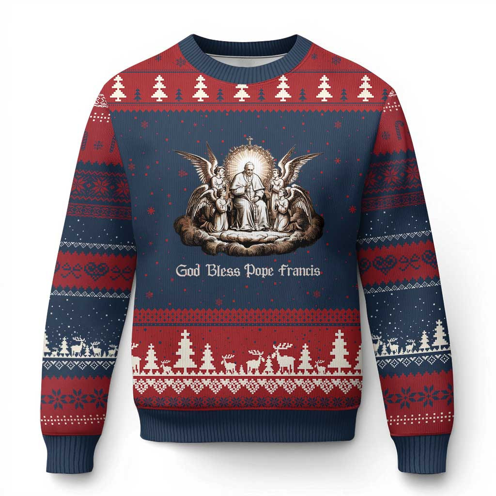 Rushgleam God Bless Pope Ugly Christmas Sweater Memorial Angel Catholic Faith Gift For Christian