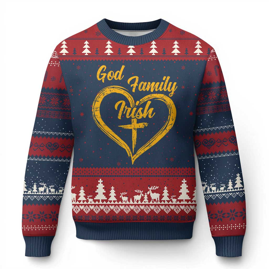 Rushgleam God Family Irish Ugly Christmas Sweater Vintage Cross In Heart Christian Best Gift Ideas