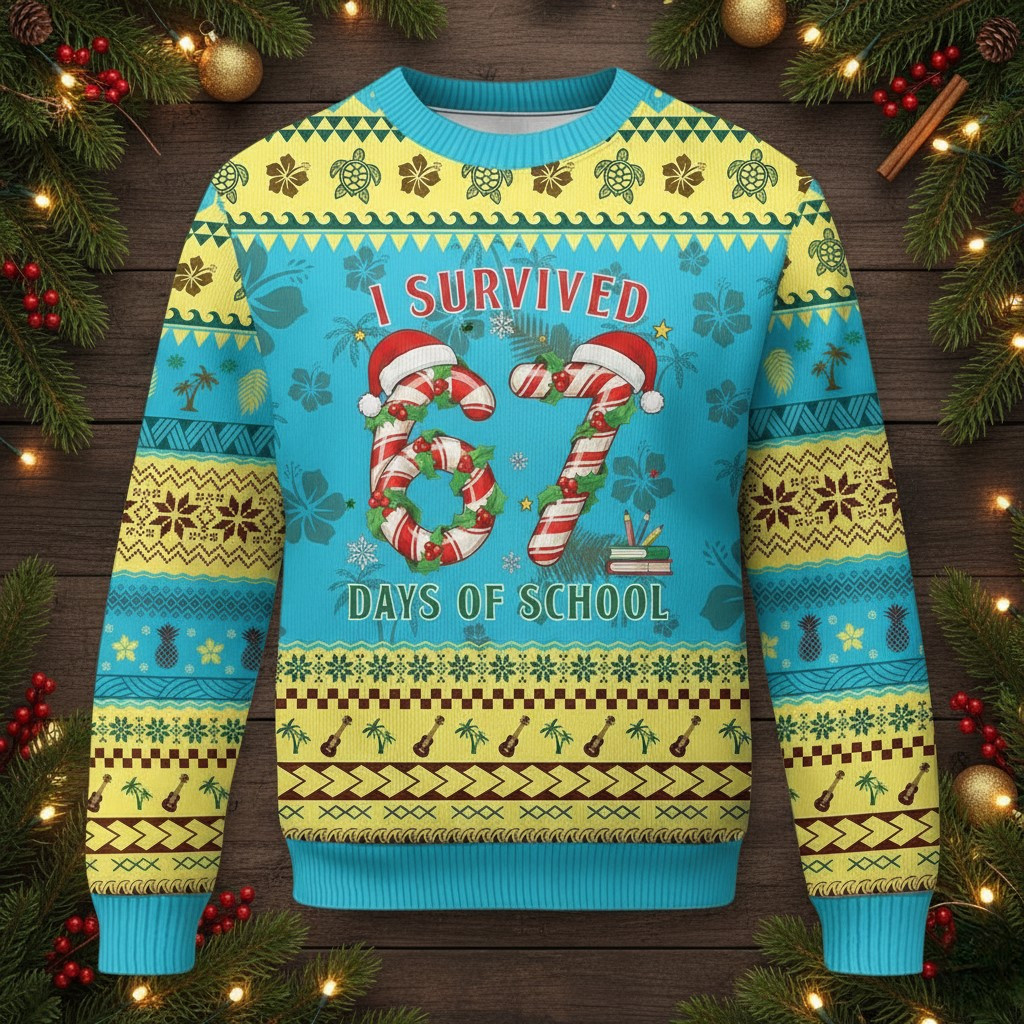 67 Days Of School Ugly Christmas Jumper Cute 6 7 Graphic Tropical Clothes Funny Gifts