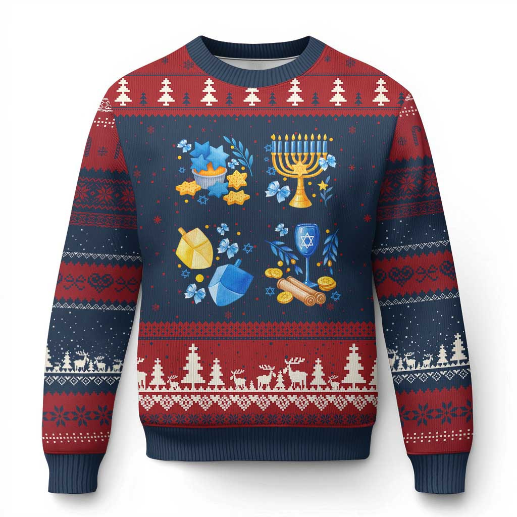 Rushgleam Hanukkah Celebration Ugly Christmas Sweater Menorah Star Of David Candle Dreidel Lovely Gift