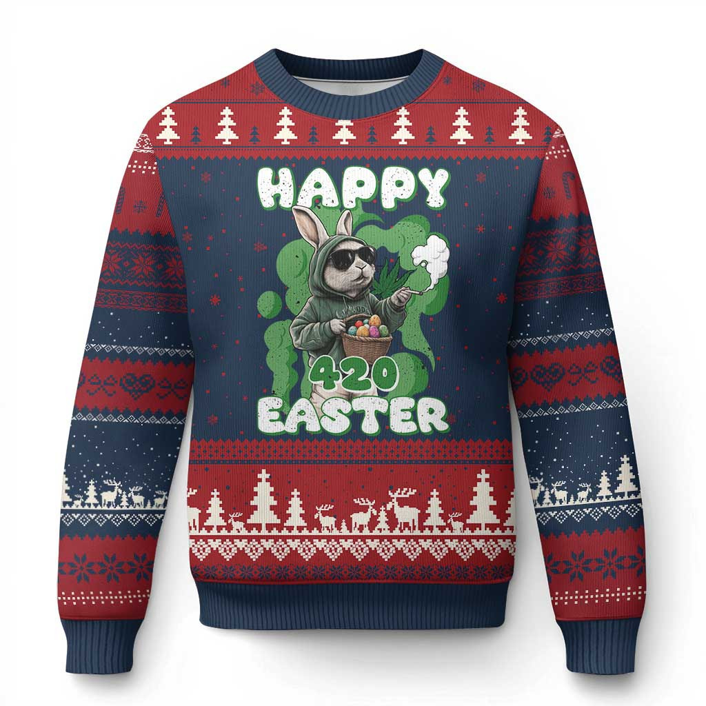 Rushgleam Happy 420 Easter Ugly Christmas Sweater Funny Smoking Easter Bunny Gift for Teenager