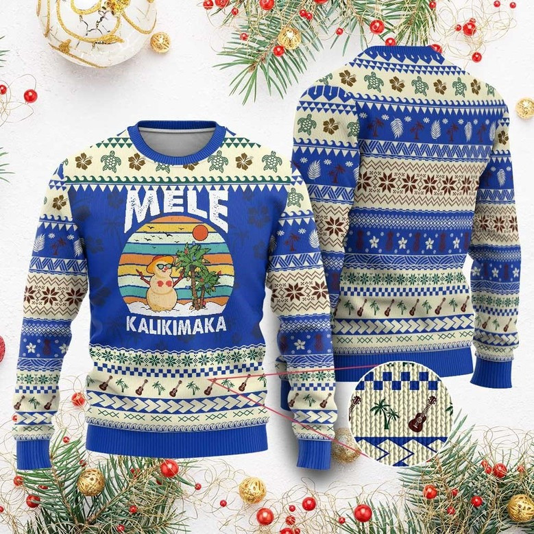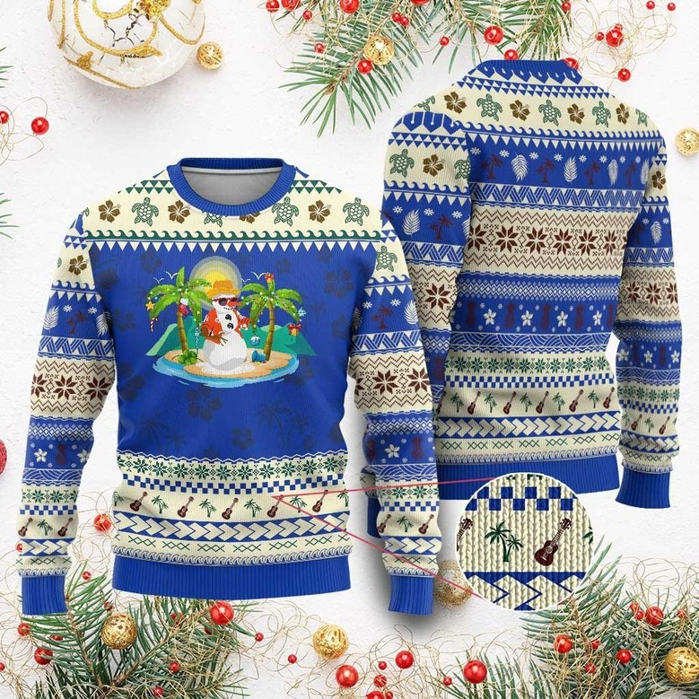 Rushgleam Hawaiian Snowman Mele Kalikimaka Ugly Christmas Sweater Aloha Beach Christmas Gifts