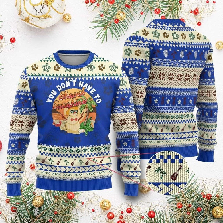 Rushgleam Hawaiian Snowman Shovel Sunshine Ugly Christmas Sweater Aloha Xmas Gifts For Her