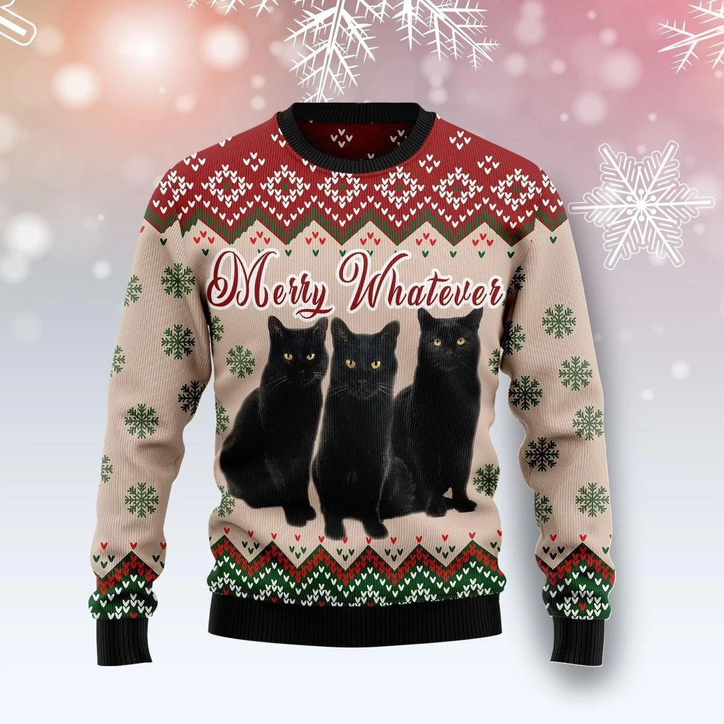 Black Cat Merry Whatever Ugly Christmas Sweater Cute Xmas Holiday Gifts For Cat Lovers