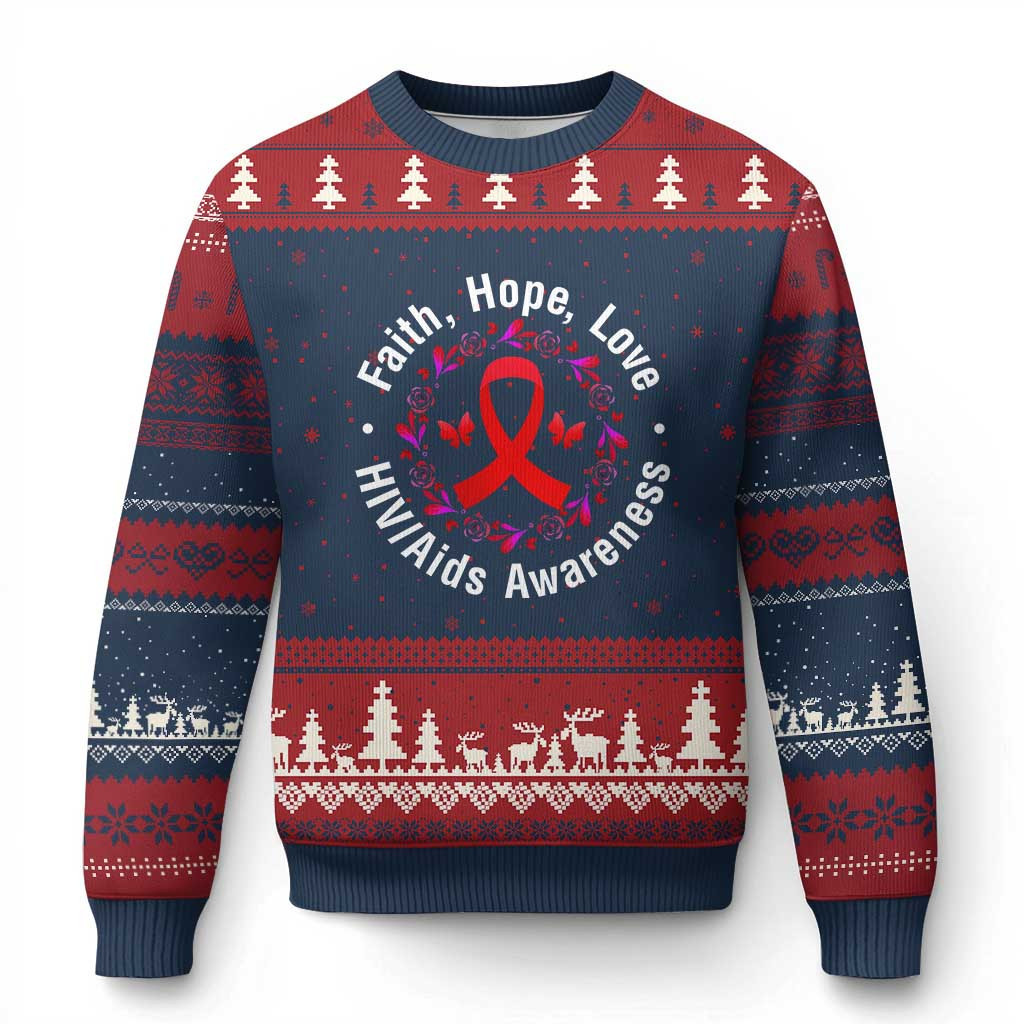 Rushgleam HIV Awareness Ugly Christmas Sweater Faith Hope Love Empowerment Gift For Friend