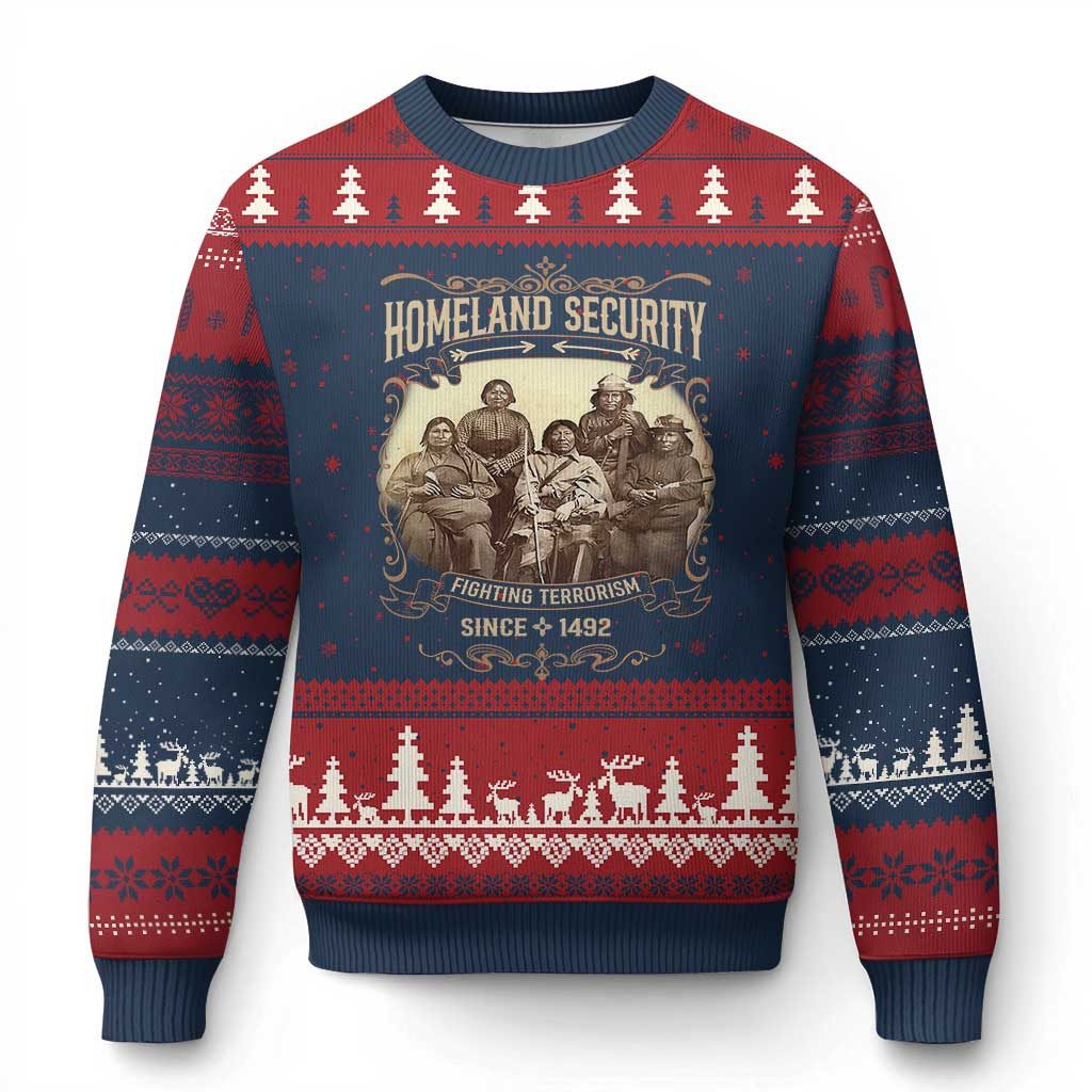 Rushgleam Homeland Security Fighting Terrorism Ugly Christmas Sweater Native American History Merch