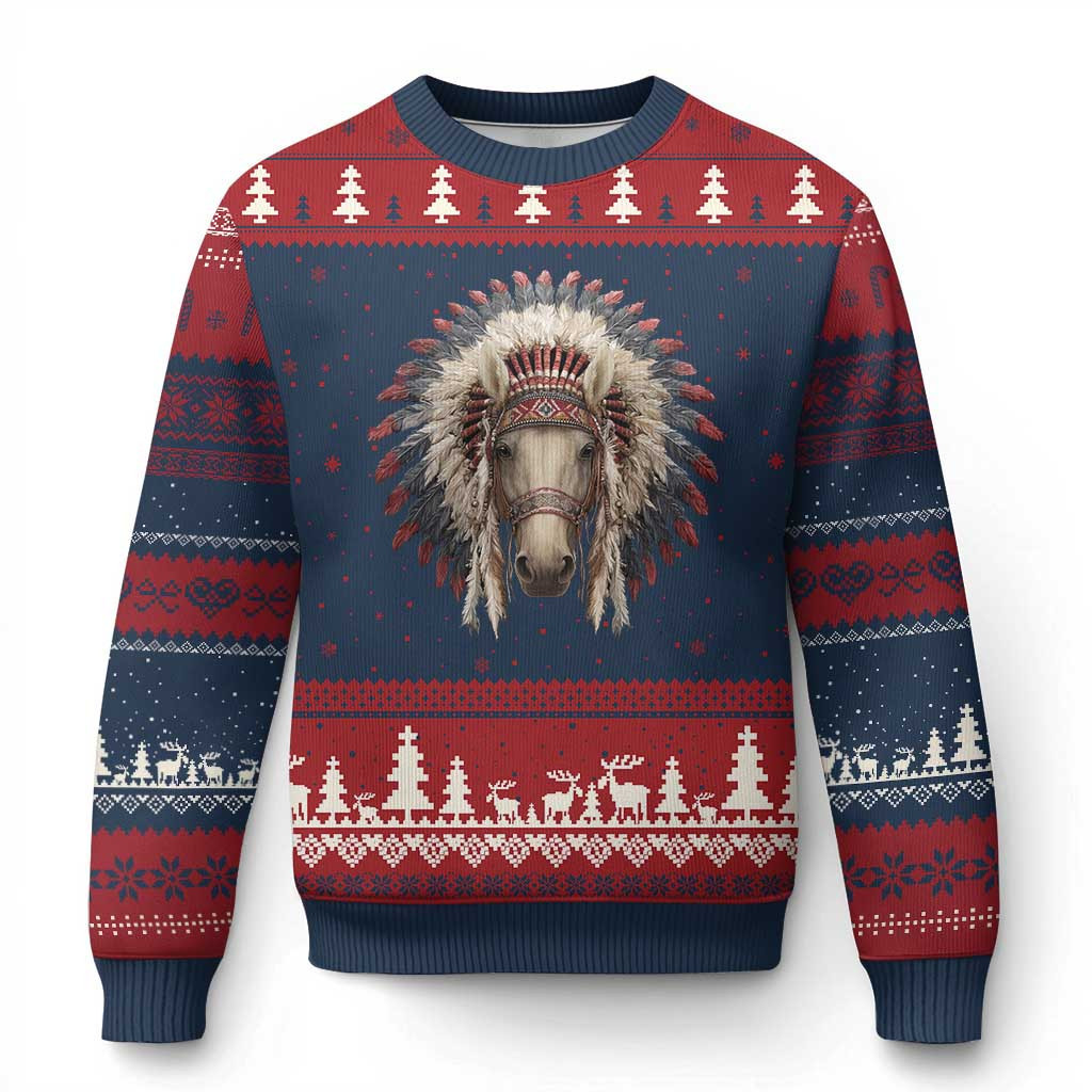 Rushgleam Horse Native American Indigenous Heritage Ugly Christmas Sweater Gift For Horse Lover