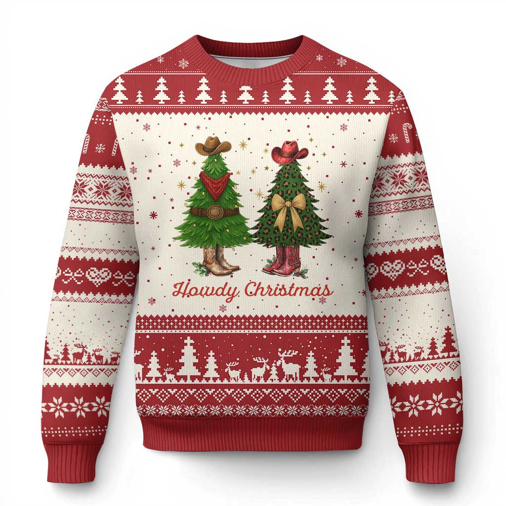 Rushgleam Howdy Xmas Ugly Christmas Sweater Coquette Xmas Tree Cowgirl Gift For Her
