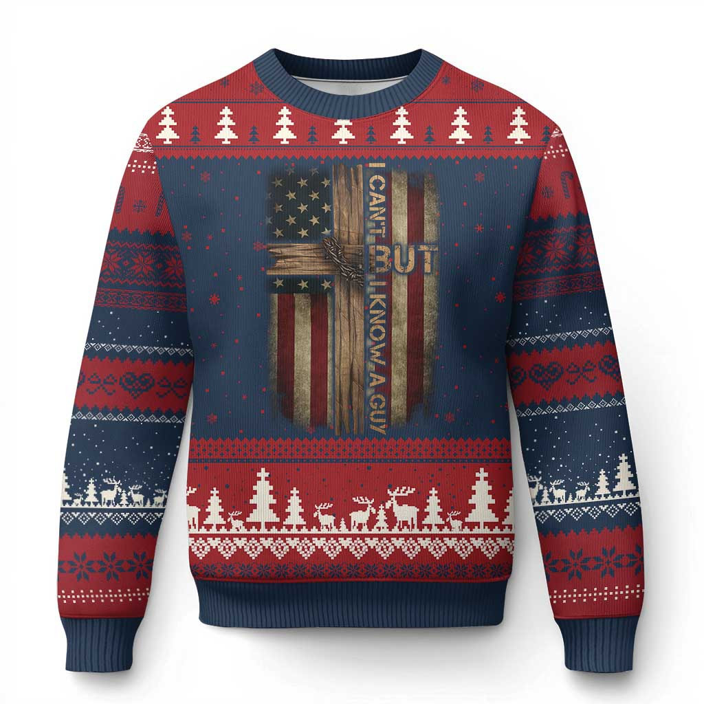 Rushgleam I Can’t But I Know A Guy Ugly Christmas Sweater Funny Christian Jesus Cross Gift Ideas