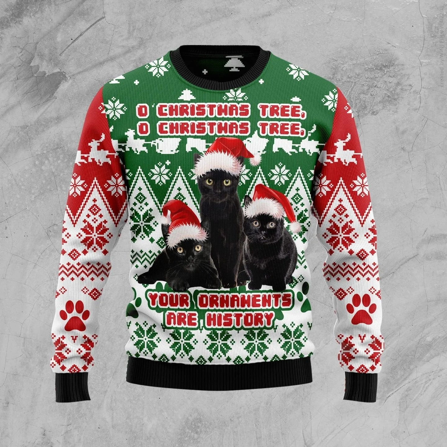 Black Cat O Christmas Tree Ugly Christmas Sweater Your Ornaments Are History Clothes Gifts