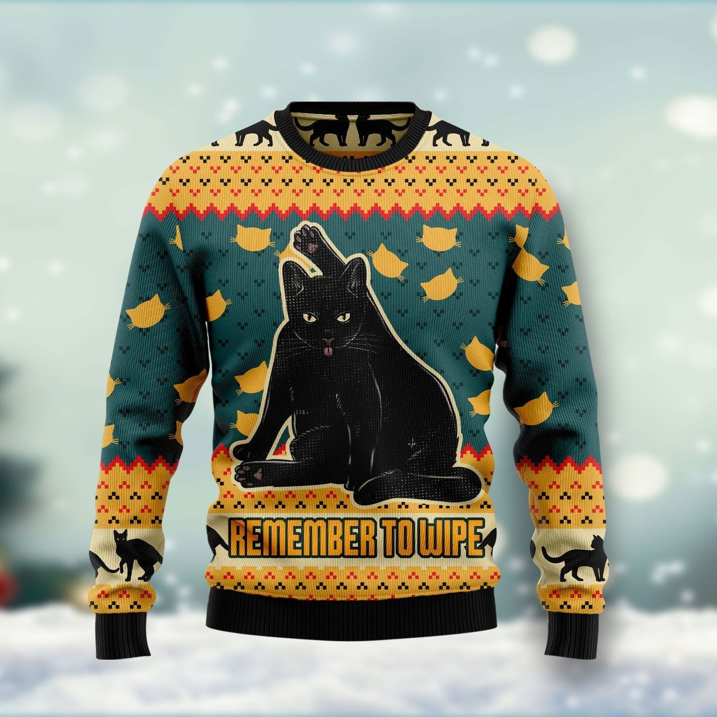 Black Cat Remember To Wipe Ugly Christmas Sweater Funny Xmas Jumper Gifts For Cat Lovers