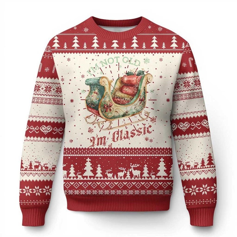 Rushgleam I’m Not Old I’m Classic Ugly Holiday Sweater Funny Jumper Santa Sleigh Themed Christmas Gifts