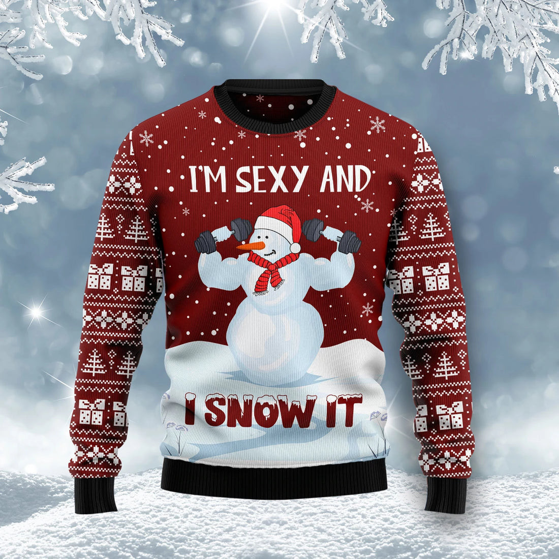 Rushgleam I’m Sexy And I Snow It Ugly Christmas Sweater Funny Xmas Snowman Sweater Gifts For Her