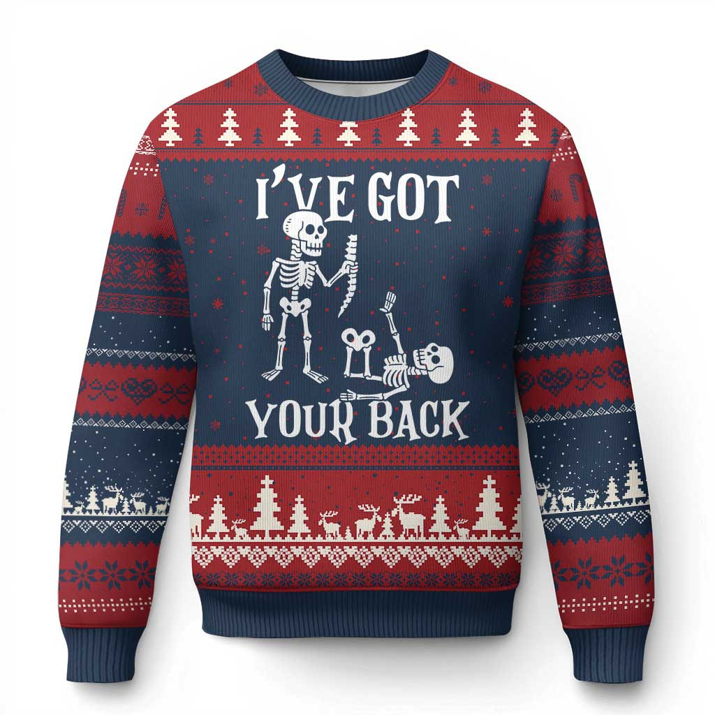 Rushgleam I’ve Got Your Back Ugly Christmas Sweater Halloween Skeleton Gift Ideas For Xmas