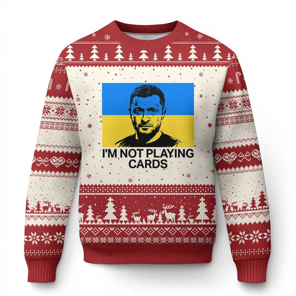 Rushgleam Im Not Playing Cards Ugly Christmas Sweater Zelensky Trump Ukraine Flag Xmas Sweater