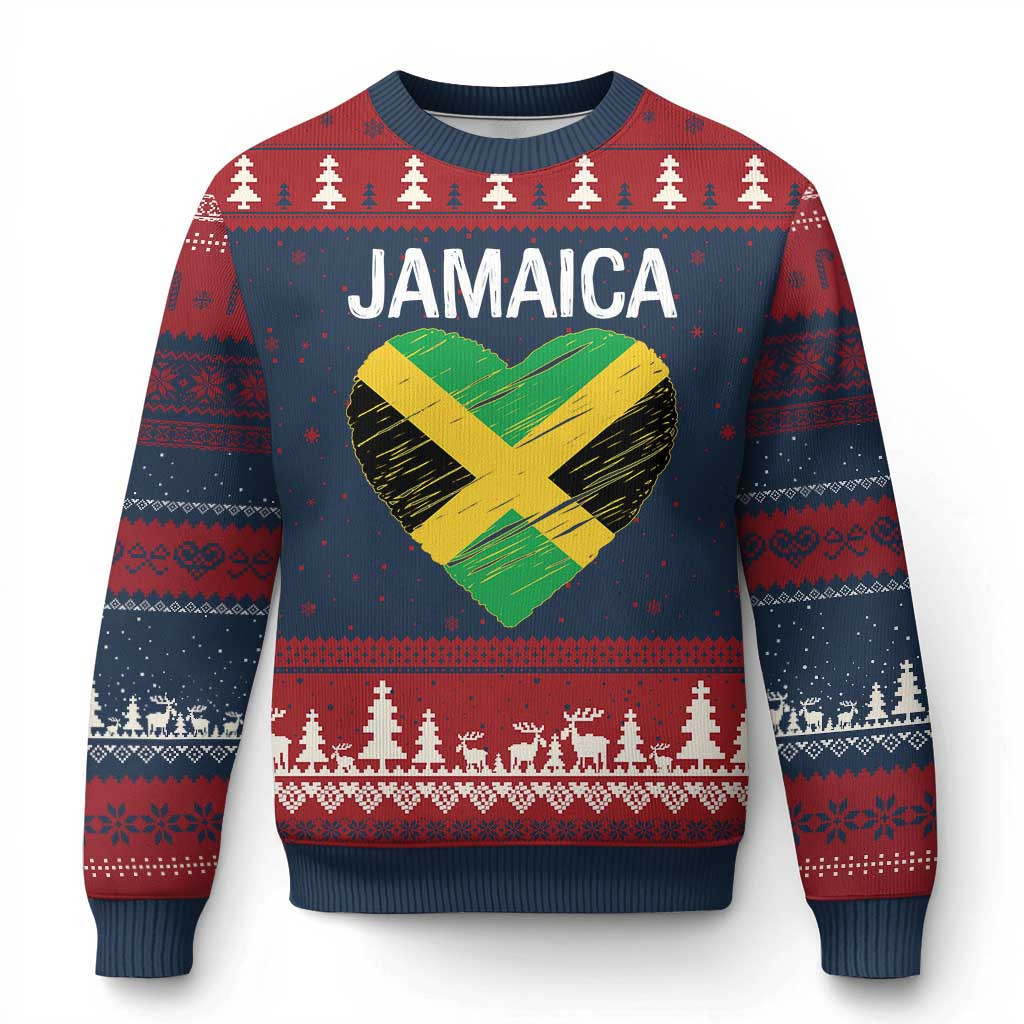 Rushgleam Jamaican Heart Flag Ugly Christmas Sweater Patriotic Jamaica Girls Proud Jamaican Roots Xmas Clothing