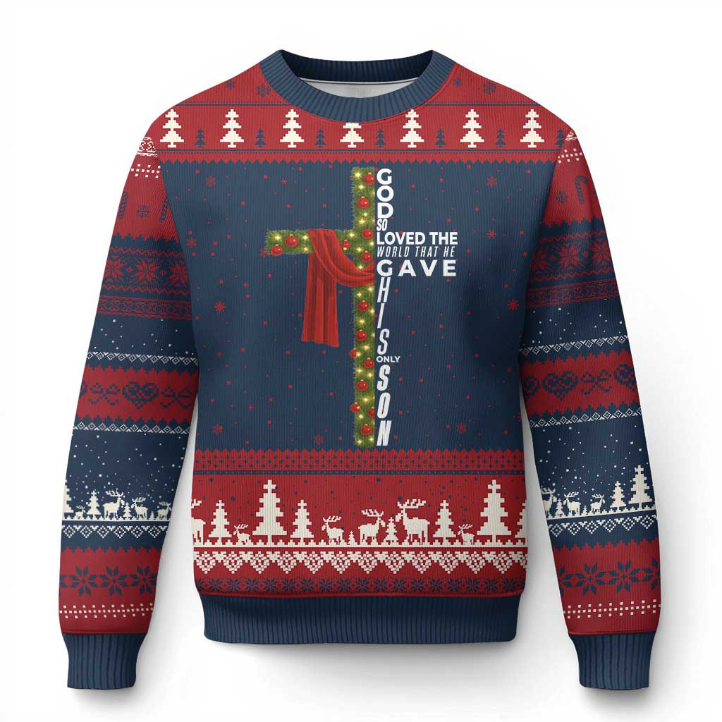 Rushgleam Jesus Christian Xmas Ugly Christmas Sweater God So Loved The World Xmas Apparel