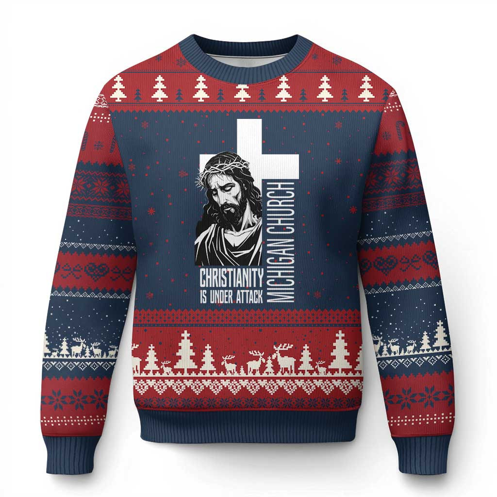 Rushgleam Jesus Christianity Is Under Attack Ugly Christmas Sweater Faith Clothing Gift For Men Xmas
