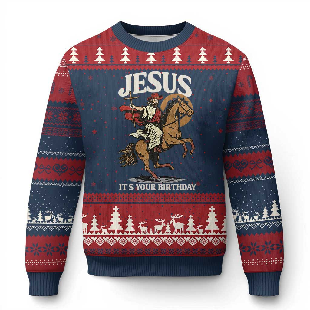 Rushgleam Jesus Cowboy It’s Your Birthday Ugly Christmas Sweater Faith Cowboy Gift For Christian