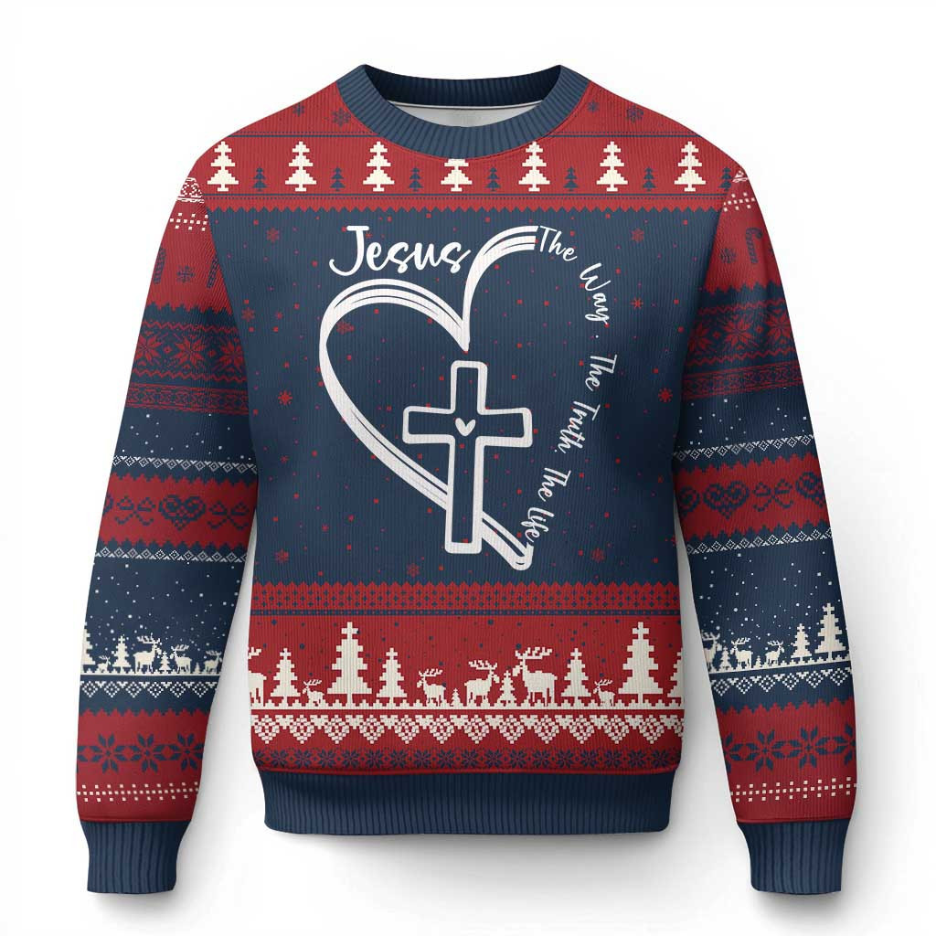 Rushgleam Jesus The Way The Truth The Life Ugly Christmas Sweater Christian Cross With Heart Xmas Sweater