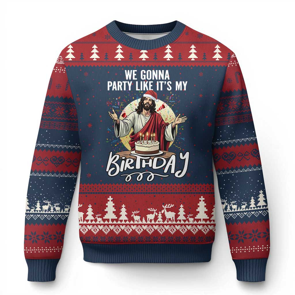Rushgleam Jesus We Gonna Party Like It’s My Birthday Ugly Christmas Sweater Christian Funny Gift