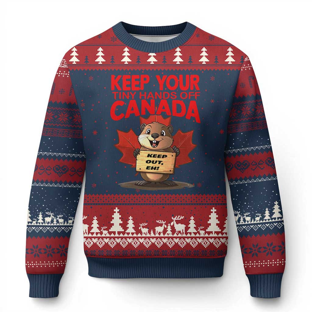 Rushgleam Keep Your Tiny Hands Off Canada Ugly Christmas Sweater Not For Sale Canadian Xmas Clothing