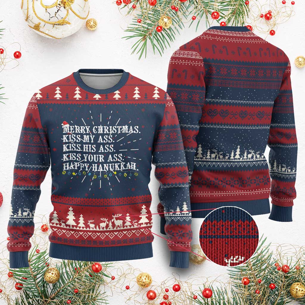Rushgleam Kiss My His Your Ass Ugly Christmas Sweater Happy Hanukkah Gift For Him