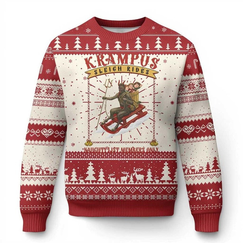 Rushgleam Krampus Sleigh Rides Ugly Christmas Sweater Spooky Jumper Gifts For Holiday Festival