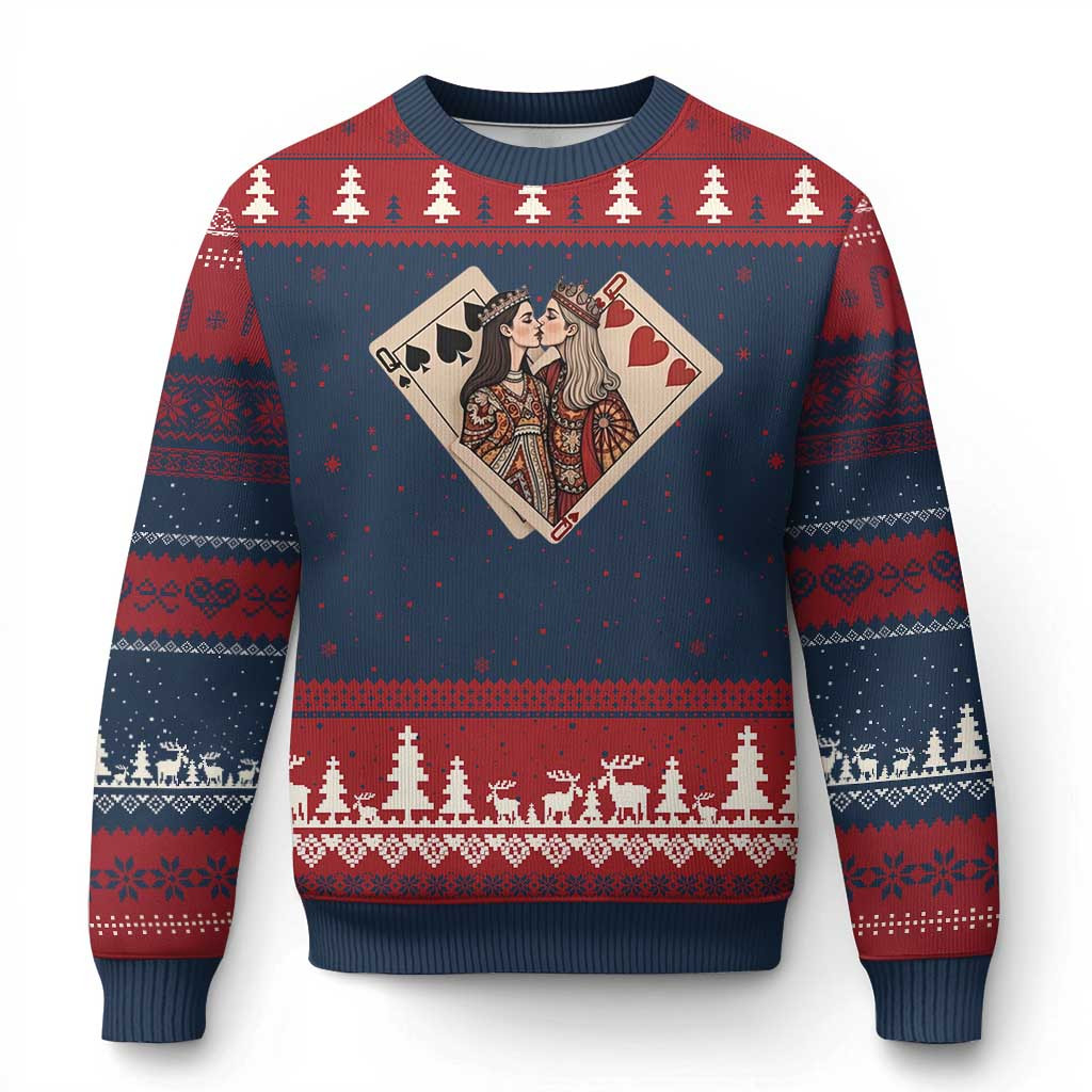 Rushgleam Lesbian Pride Ugly Christmas Sweater Vintage Kissing Cards Sapphic Art Xmas Apparel
