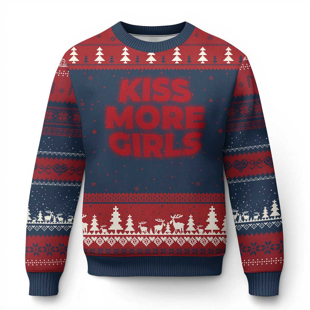 Rushgleam Lesbian Ugly Christmas Sweater Kiss More Girls Funny Pride Month Christmas Clothes