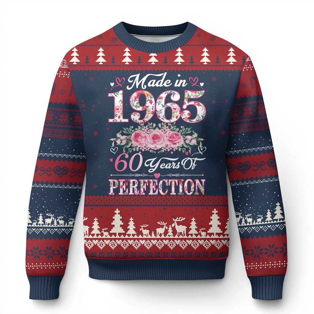 Rushgleam Made In 1965 60 Years Of Perfection Ugly Christmas Sweater Floral Beautiful Gift For Mom