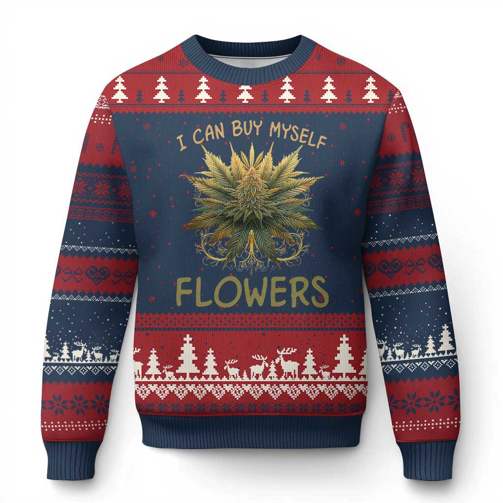 Rushgleam Marijuana I Can Buy Myself Flowers Ugly Christmas Sweater Funny Weed Sweater Cannabis Gifts