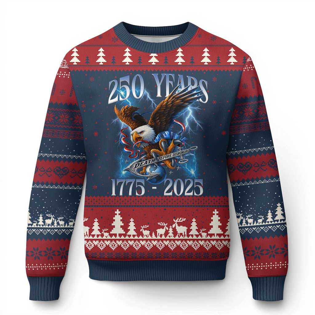 Rushgleam Marine Veteran 250Th Anniversary Ugly Christmas Sweater Eagle Patriotic Military Xmas Apparel