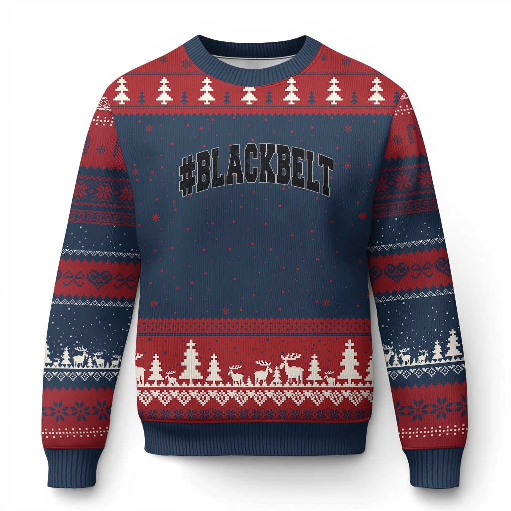 Rushgleam Martial Arts Karate Black Belt Ugly Christmas Sweater Retro Varsity Vintage Christmas Sweater