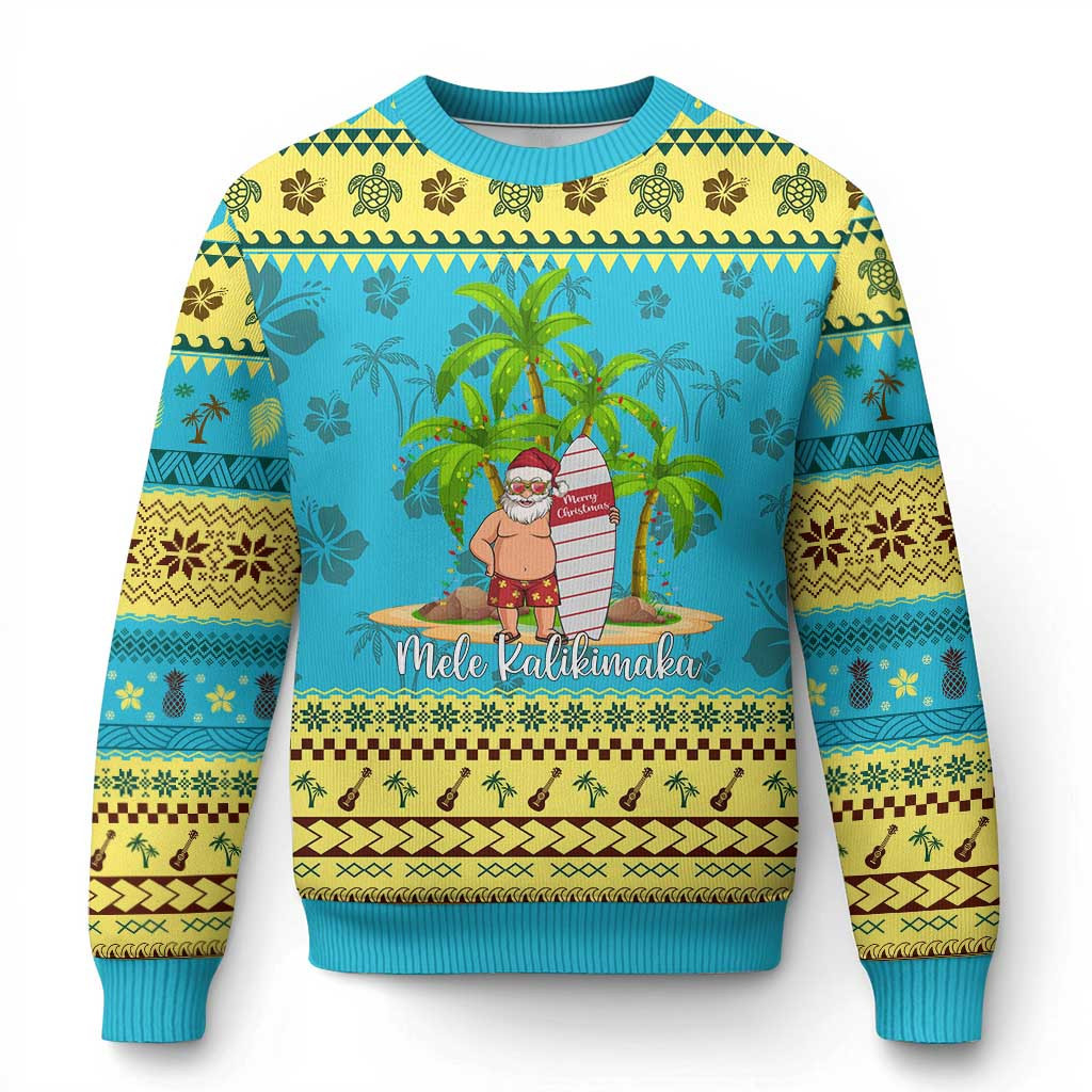Rushgleam Mele Kalikimaka Ugly Christmas Sweater Hawaii Surfing Santa Tropical Beach Gift For Bestie