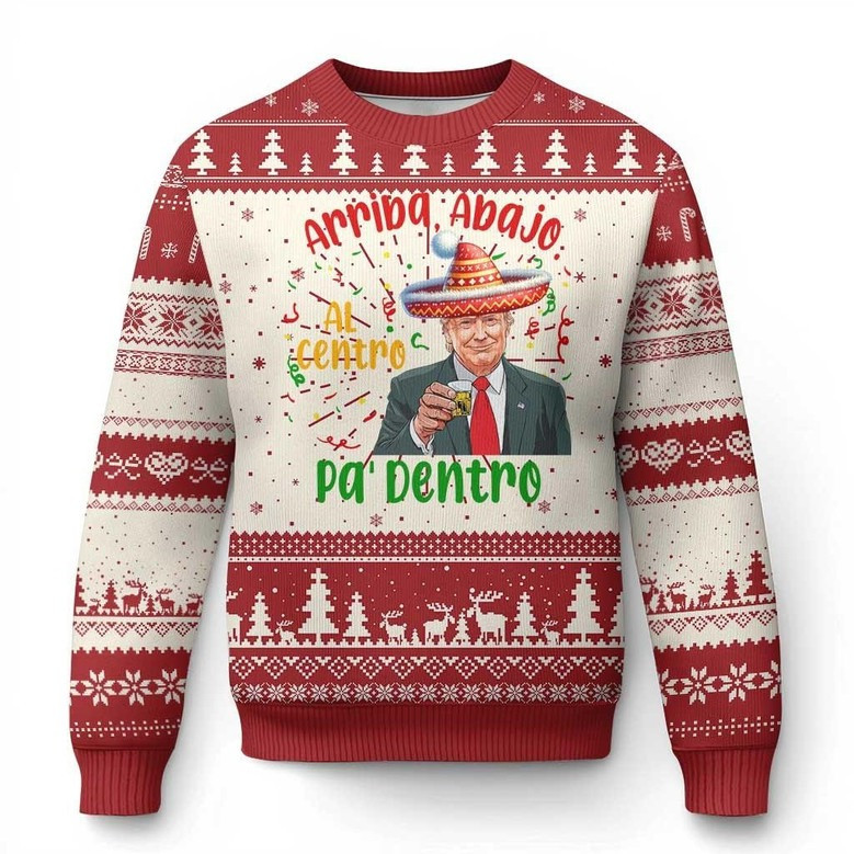 Rushgleam Meme Trump Drinking Arriba Abajo Ugly Christmas Sweater Funny Mexican Themed Gifts