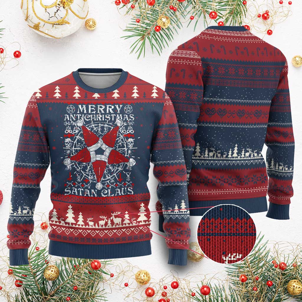 Rushgleam Merry Anti Christmas Pentagram Ugly Christmas Sweater Satan Claus Sweater Anti Xmas Gifts